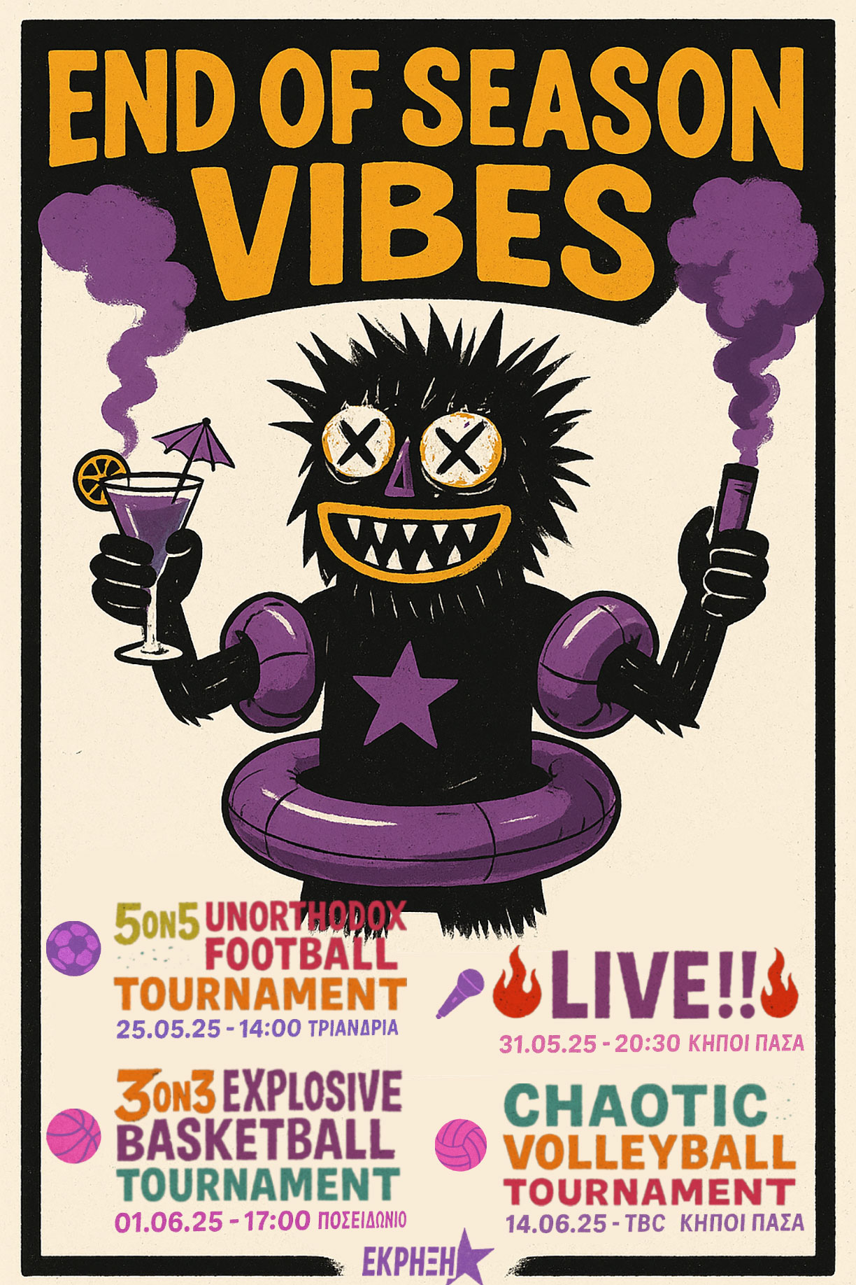 ![[Αφίσα για εκδήλωση με τίτλο «Cocktailάκια στην αυλή». Στο επάνω μέρος υπάρχει ένα λευκό σεμεδάκι πάνω σε μαύρο φόντο. Η εκδήλωση είναι προγραμματισμένη για την Κυριακή 4 Μαΐου 2025, στις 17:00, στο Στέκι. Αναφέρεται πως τα έσοδα προορίζονται για ιατρικά έξοδα συντρόφισσας. Στο κέντρο της αφίσας δεσπόζει ένα μεγάλο ποτήρι κοκτέιλ γεμάτο με φρούτα, απ’ το οποίο ξεπροβάλλει σωλήνας νοσοκομειακού ορού ως καλαμάκι. Δίπλα, μια θηλυκότητα από παλιά φωτογραφία φαίνεται να αιωρείται παιχνιδιάρικα, πιασμένη από ένα κεράσι. Με μωβ νέον γράμματα πάνω στο ποτήρι γράφεται η φράση "early drinks", αλλά το γράμμα "i" έχει σβηστεί και αντικατασταθεί με "u", σχηματίζοντας τη λέξη "drunks" σαν οπτικό λογοπαίγνιο. Στην κάτω αριστερή γωνία εμφανίζεται το λογότυπο της "Προοδευτικής Έκρηξης Τούμπας".]](/images/stories/images/AFISES/steki/2024-2025/cocktailaki-afisaki.jpg)