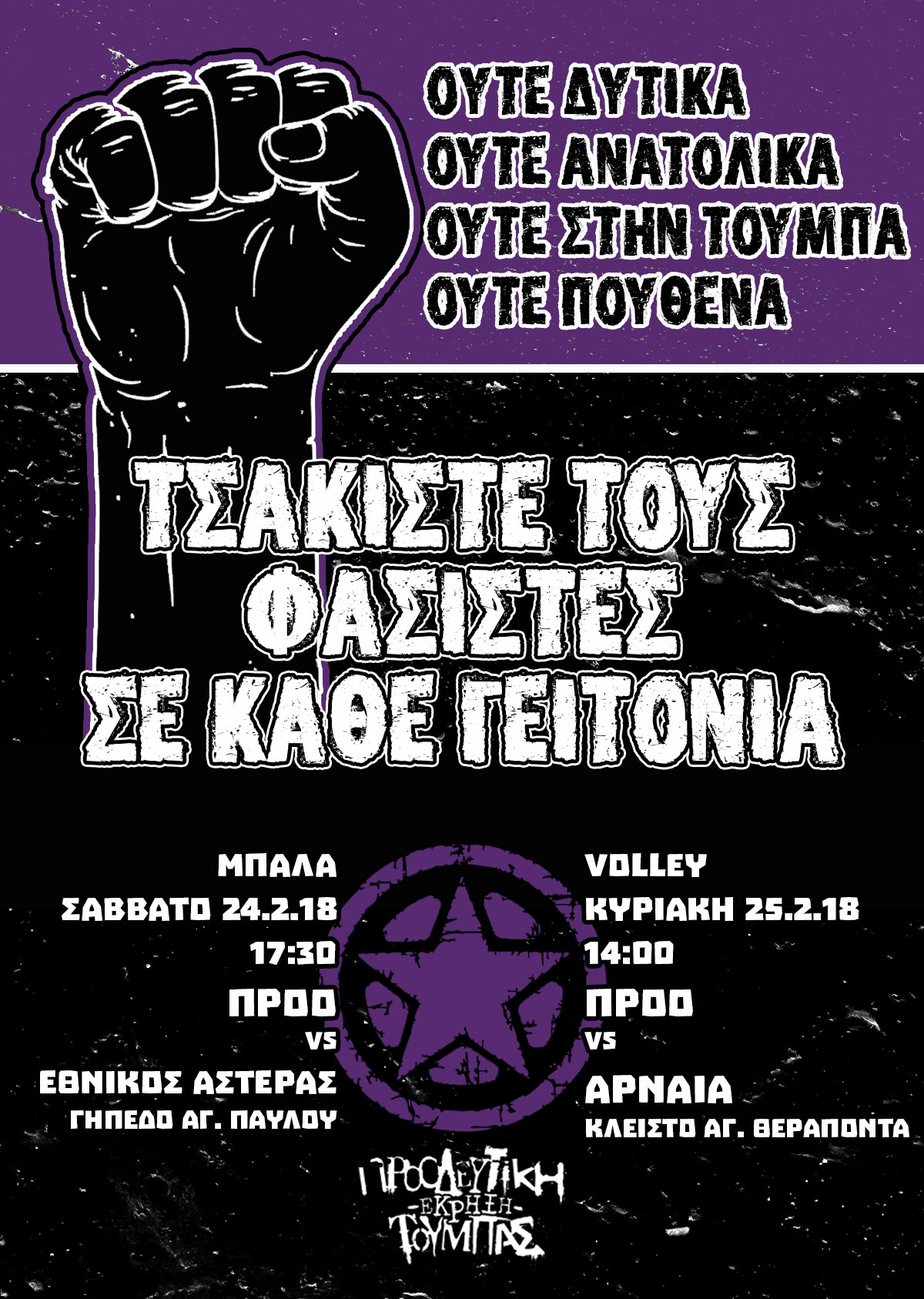 Κανένας εθνικισμός δεν αναπτύχθηκε ποτέ μόνος του, σε ένα κενό αέρος, αλλά πάντα απέναντι και παράλληλα με άλλους εθνικισμούς. Μαζί με τους συντρόφους και τις συντρόφισσες από άλλες χώρες λοιπόν, στεκόμαστε ενάντια σε κάθε εθνικισμό, και εδώ και παντού. Και στεκόμαστε απέναντι σε όλα τα πρόσωπα του εθνικισμού. Σε αυτό που ανεμίζει ελληνικές σημαίες σε πλατείες και μπαλκόνια, που στήνει εθνικά πανηγύρια, που σπέρνει το μίσος προς οτιδήποτε διαφορετικό, που επιτίθεται σε κινηματικούς χώρους, που αναζητά εθνικά σύμβολα και βασιλιάδες, που διεκδικεί ονόματα και γενέτειρες αυτοκρατόρων, που ερμηνεύει το παρελθόν κατά το δοκούν και ψάχνει συνέχειες και γραμμικότητες, που πετυχαίνει την εθνική ομοιογένεια με εκκαθαρίσεις και διωγμούς. Αλλά και σ' αυτό που προτάσσει κρατικές συμμαχίες, που μιλάει για εθνική ανάπτυξη, που πουλάει πολυπολιτισμικότητα για να στήσει business στις πλάτες μας, που θέλει να κάνει τη βία εναντίον των καταπιεσμένων τουριστική ατραξιόν.