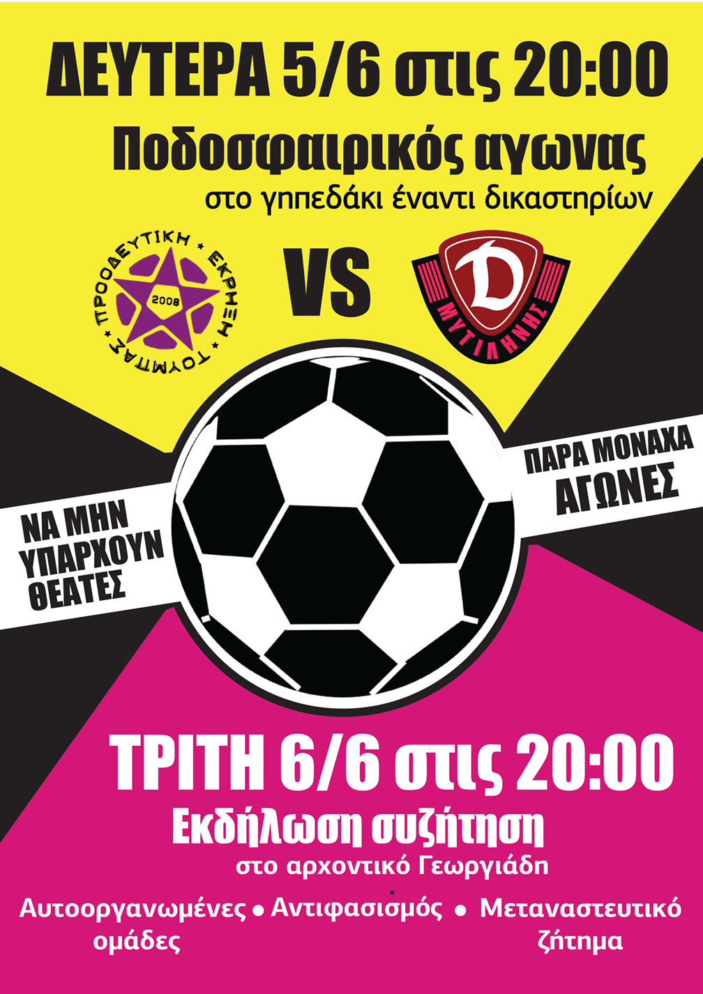 Φιλικός αγώνας αλληλεγγύης: Δυναμό Μυτιλήνης - Προοδευτική Έκρηξη Τούμπας |